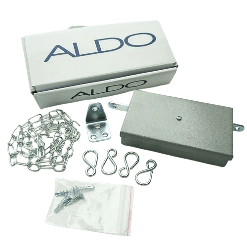 قفل زنجیری آلدو، بعنوان یکی از تجهیزات مهم سخت افزاری در آیفون تصویری تولید میشود. قفل متصل به آیفون تصویری در بازار در دو نوع برقی و زنجیری در دسترس مشتریان قرار دارد و هر کدام به تناسب نیاز قابل سفارشگذاری میباشند. اما عملکرد قفل زنجیری بسیار ساده است؛ بدین شکل که قفل با استفاده از ولتاژ 12 ولت بدستور پنل فعال و زنجیر متصل به زبانه را میکشد تا درب باز شود. باتوجه به اینکه شرکت آلدو دارای سبقه محافظتی است. تمام ملزومات مورد نیاز به دقت در هنگام تولید انتخاب و مونتاژ شده است. تا کاربر بدون هیچ گونه نگرانی محصول را خریداری و نصب نماید.