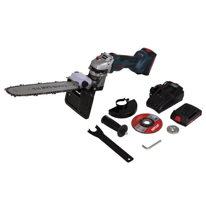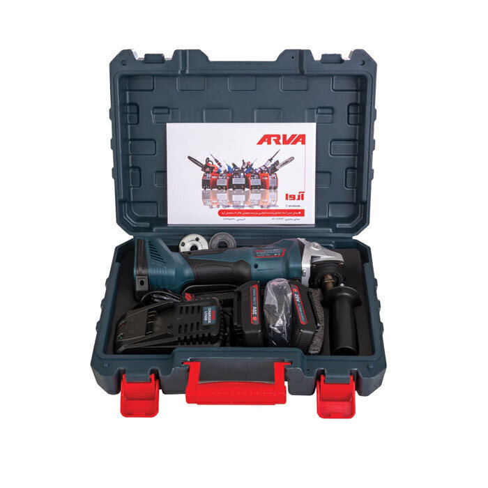 باطری، دسته کمکی، آچار و محافظ دیسک، دفترچه راهنما، کارت گارانتی، تبدیل مینی فرز به اره زنجیری |