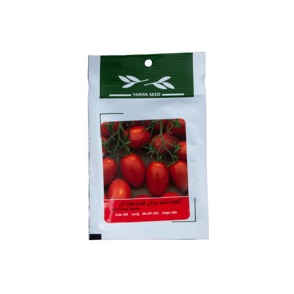 • دارای 2 گرم بذر گوجه تخم مرغی قرمز بوته‌ای