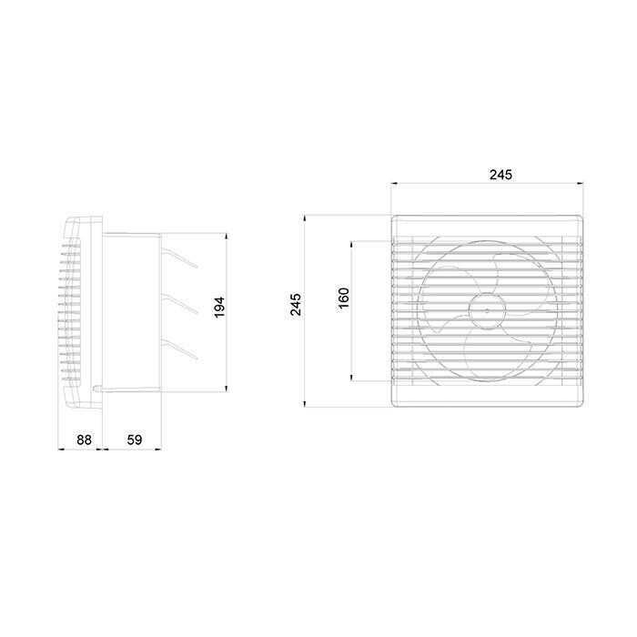 • دبی (250/420) ) mᶟ/h دارای ناحیه تخلیه مربع شکل برای نصب روی پنجره و یا تخلیه آزاد