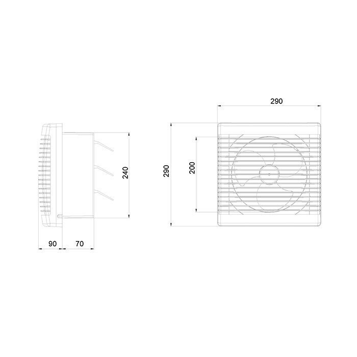 - دبی (250/420) ) mᶟ/h دارای ناحیه تخلیه مربع شکل برای نصب روی پنجره و یا تخلیه آزاد