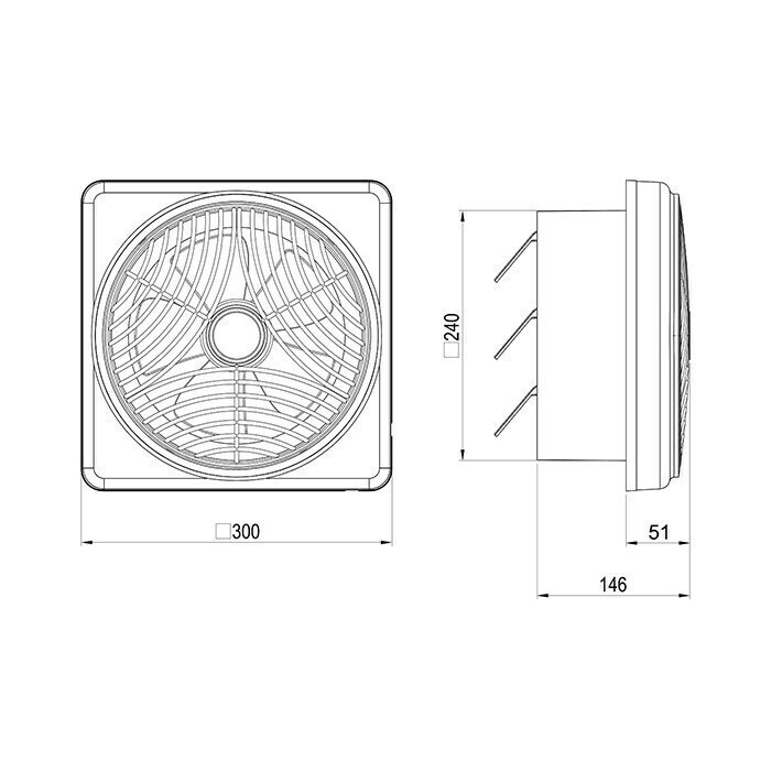 - دبی (210/1000) ) mᶟ/h دارای ناحیه تخلیه مربع شکل برای نصب روی پنجره و یا تخلیه آزاد