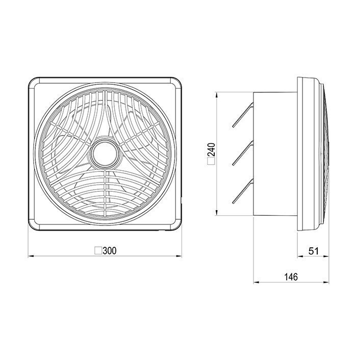 - دبی (210/1000) ) mᶟ/h دارای ناحیه تخلیه مربع شکل برای نصب روی پنجره و یا تخلیه آزاد