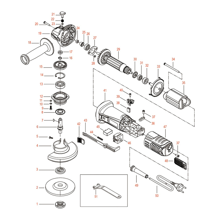 دسته کمکی با روکش ضد تعریق ,یک جفت زغال ,یک عدد آچار تخت |