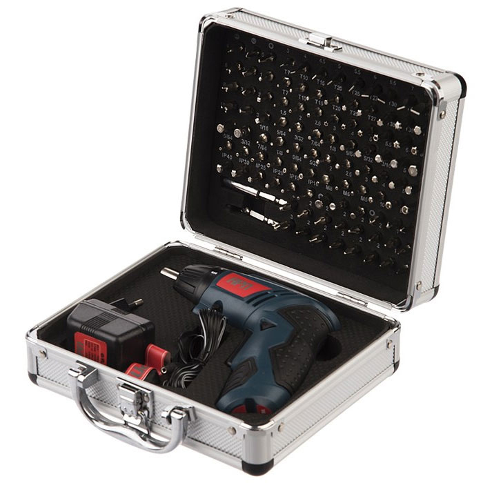 کیف آلومینیومی به همراه 102 قطعه، شارژر و دفترچه راهنما