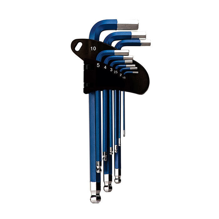 - شامل 9 عدد آچار آلن دسته بلند شش گوش نخودی در ابعاد 10، 8، 6، 5، 4، 3، 2.5، 2، 1.5 میلیمتر