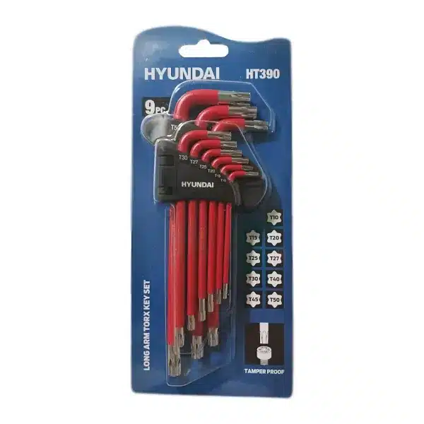 آچار آلن سری ستاره ای روکش دار دسته بلند 9 عددی هیوندای مدل HT390