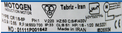 - قدرت: ۱/۸ اسب بخار (≈ 0.09 کیلووات)