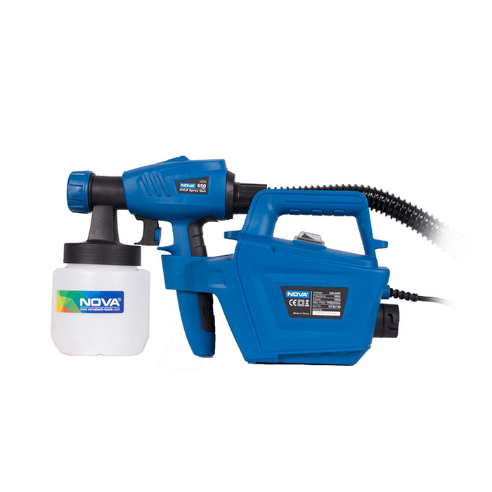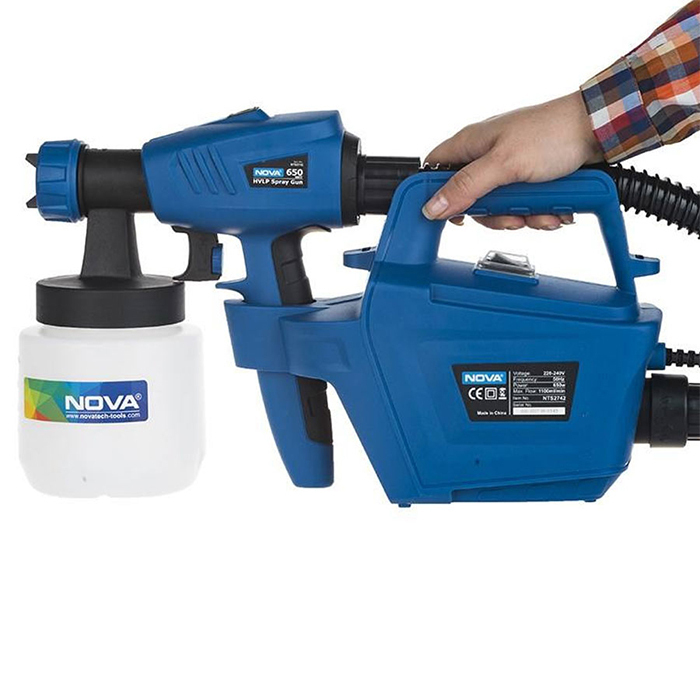 پیستوله برقی 650 وات نووا مدل NTS 2742 با موتور قدرتمند 650 وات، قابلیت پاشش رنگهای غلیظ و رقیق را دارد و به کمک سیستم پیشرفته تنظیم پاشش، دقت بالاتری در کار ایجاد میکند. وجود دو نازل در قطرهای 1.8 و 2.6 میلیمتر، شلنگ 1.8 متری و کابل 2 متری، انعطاف و سهولت بیشتری در استفاده به همراه دارد. همچنین سیستم تعویض سریع فیلتر هوا نگهداری دستگاه را آسانتر کرده است. تنها محدودیت این پیستوله، ظرفیت متوسط آن است که بیشتر برای پروژههای خانگی یا کارگاهی سبک تا نیمهسنگین مناسب بوده و در پروژههای بسیار بزرگ صنعتی ممکن است به دفعات بیشتری از پر کردن مخزن نیاز باشد.