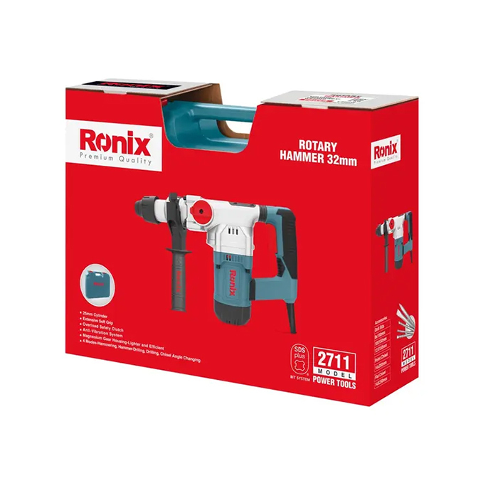 بتن کن رونیکس مدل ۲۷۱۱ در پروژههای بنایی و ساخت و ساز به کار میرود و نه تنها توانایی سوراخ کردن بتن را دارد بلکه از حالت تخریب و چکشی هم برخوردار است. این دستگاه با موتور ۱۲۰۰ وات و چهار حالت عملکرد (سوراخکاری ساده، چکشی، تخریب و حالت خلاص کن) طراحی شده تا در موقعیتهای گوناگون از بتنکاری سبک تا عملیات نیمهسنگین قابل اعتماد باشد. طراحی جمعوجور و دسته چرخان ۳۶۰ درجه آن نیز کنترل بیشتری به کاربر میدهد و امکان کار در زوایای دشوار را سادهتر میکند.