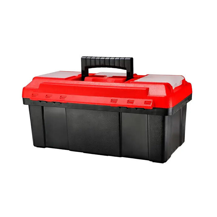 - ابزارآلات داخل جعبه ابزار پلاستیکی 21 اینچ شامل: پیچ گوشتی چهارسو، پیچ گوشتی دوسو، چکش دو شاخ، آچار فرانسه، متر، کاتر، انبردست، فازمتر، روغن دان، انبر قفلی، چسب برق، نوار تفلون، 10 عدد میخ، 10 عدد پیچ