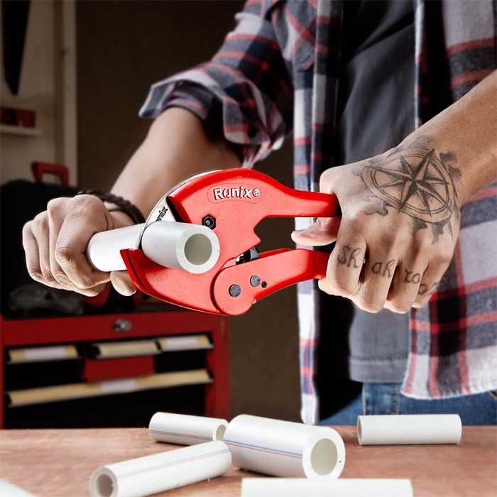 برش لولههای PVC، PPR، PE، PEX و سایر لولهها و اتصالات پلیمری تا ۴۲ میلیمتر |