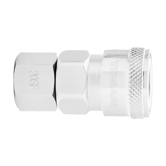 کوپلینگ باد مادگی داخل رزوه توسن مدل T21-20SFA سایز 1/4 اینچ قطعهای برای اتصال ایمن ابزارهای بادی به شلنگهای کمپرسور است. این قطعه با عملکردی کاملاً استاندارد گزینهای مطلوب و پرکاربرد برای تعمیرکاران و استفاده در کارگاهها است.