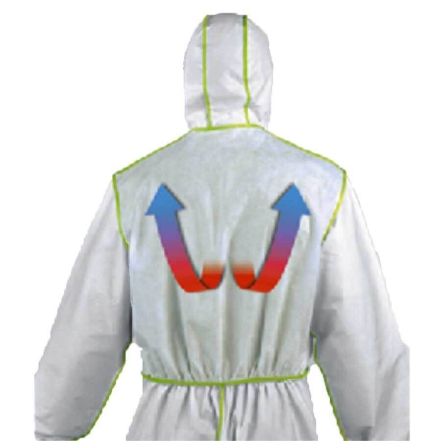 • حفره های ریز سطحی در لباس به همراه نوارهای پلی اتیلن و قسمت پشتی SMS هم محافظت و هم گردش هوای مناسب لباس را فراهم میکنند