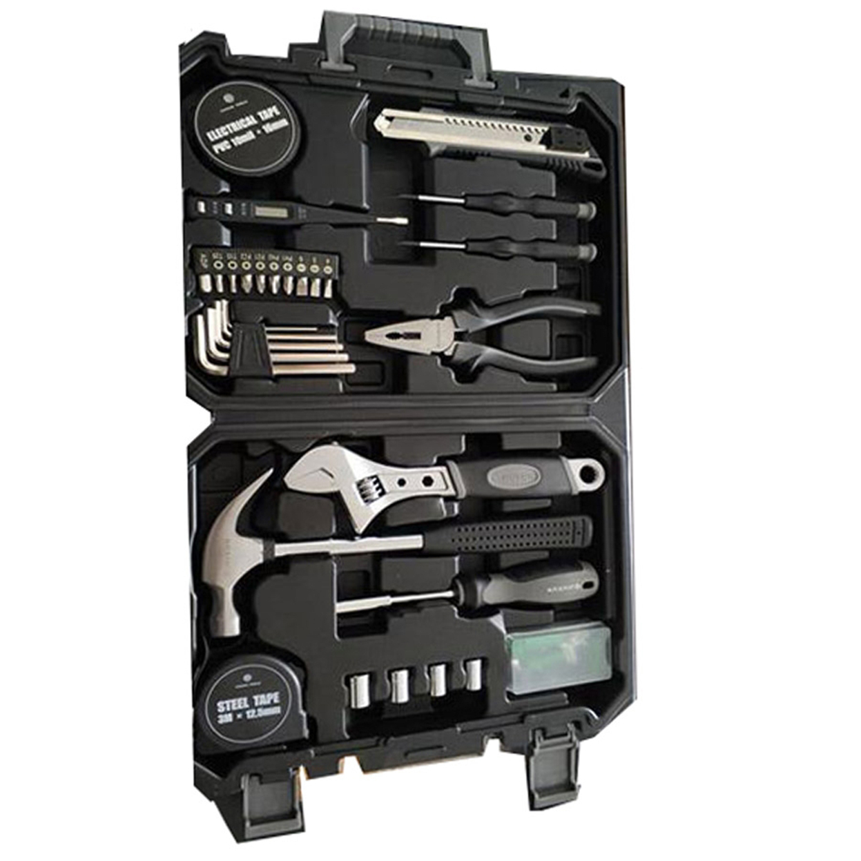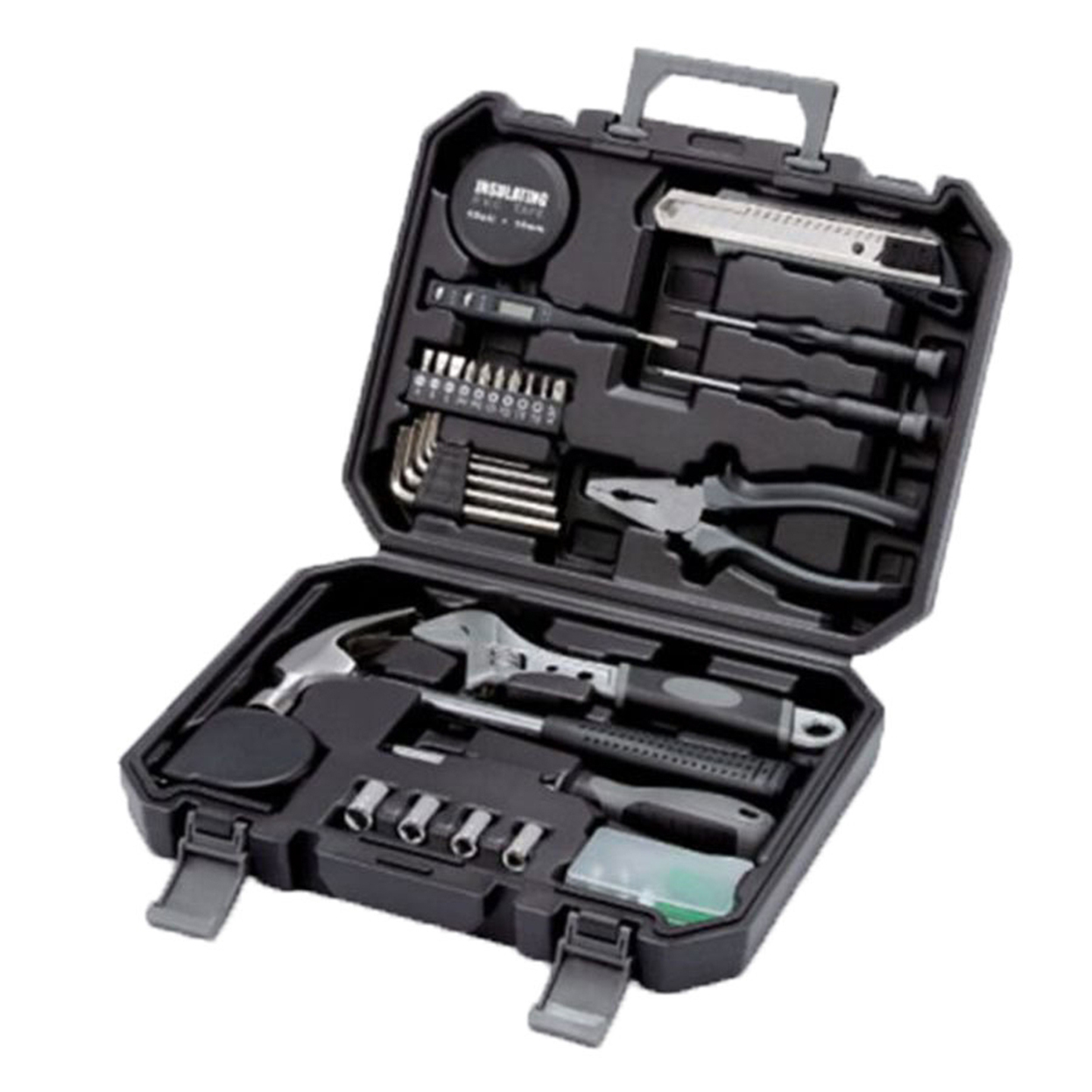 چکش میخ کش – پیچگوشتی – انبر دست – آچار فرانسه – ولت متر – پیچ و رول پلاک – کاتر – متر ۳ متری – بوشینگ ۷ تا ۱۰ میلی متری – 10 عدد سری پیچ گوشتی – پیچ گوشتی شکاف دار ۳ میلی متری – پیچ گوشتی فیلیپس چهارسو – نوار الکتریکی – آچار آلن – فازمتر دیجیتال |